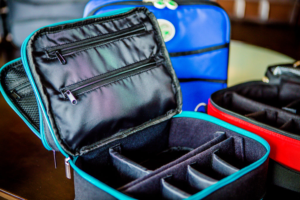 Detachable dividers keep supplies organized and accessible while traveling.